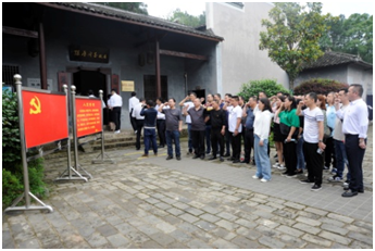 在陳賡同志生平業(yè)績陳列室,大家認真學習了解陳賡同志生平事跡、革命歷程和光輝一生,感受了其偉大的人格魅力和堅定的革命信仰,大家內(nèi)心都充滿了敬仰之情。參觀結(jié)束后,黨支部書記帶領(lǐng)全體黨員在陳賡故居門前重溫入黨誓詞,大家用高昂、奮進而又莊嚴的誓詞表達了對黨的忠誠和熱愛。